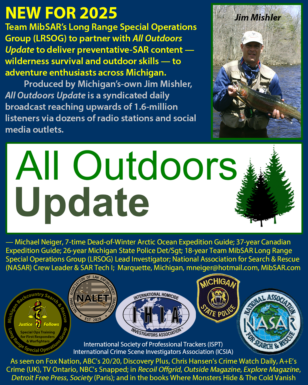 - January 5, 2025 Team MibSAR partners with All Outdoors Update to deliver preventative SAR content to radio stations and social media sites across Michigan