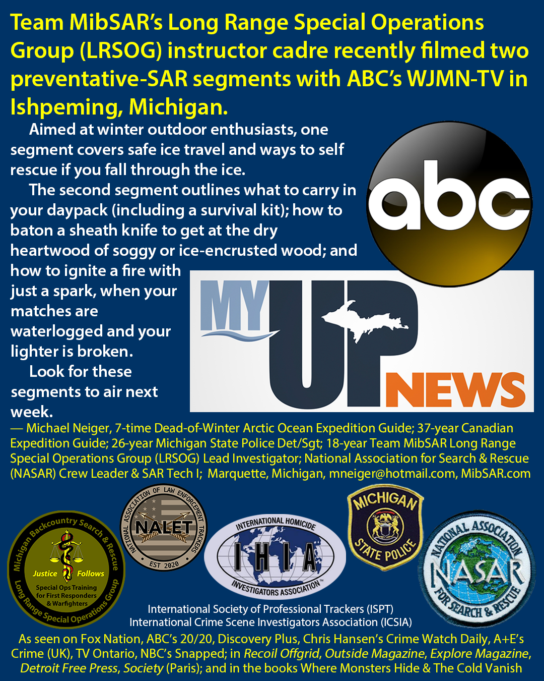 - January 16, 2025 Team MibSAR films to preventative-SAR segments with ABC's WJMN TV (Marquette, Michigan)