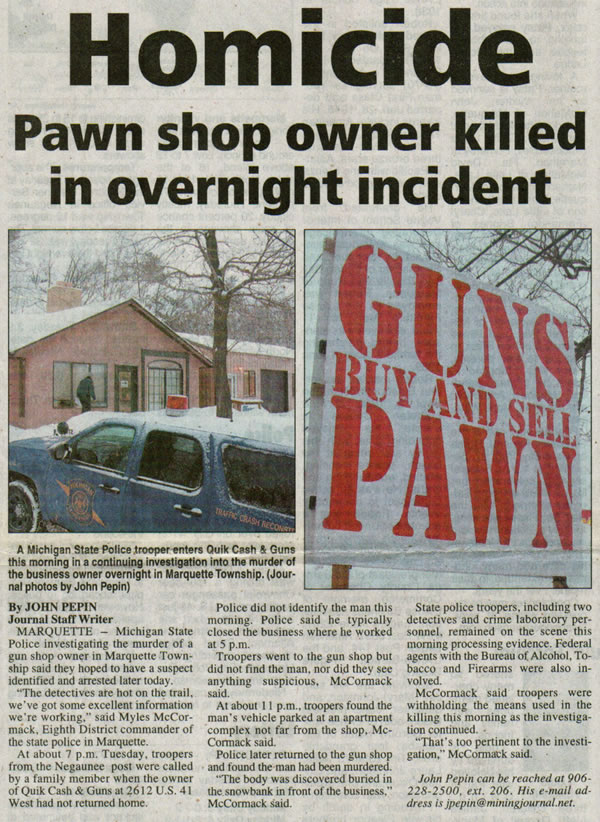investigating last Tuesday's gun shop homicide in Marquette Township